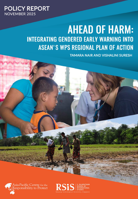 This research report was supported by Asia-Pacific Centre for the Responsibility to Protect and Asia-Pacific Partnership Against Atrocity Prevention (APPAP) Gender and Atrocity Prevention Working Group argues that integrating gendered early warning systems into the ASEAN Women Peace and Security Regional Plan of Action (WPS RPA) is essential for preventing Gender-based Violence (GBV), strengthening protection, preventing harm, and enhancing the overall well-being of women and girls.